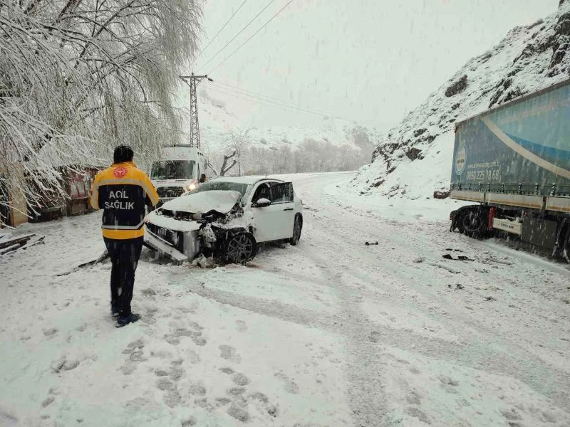 Kar yağışı kazaya neden oldu, iki araç çarpıştı: 2 yaralı