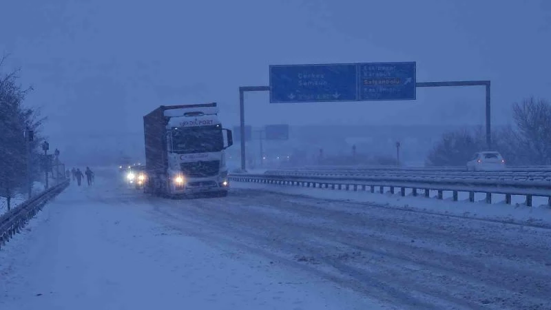 Karabük Valiliği tarafından ‘Lütfen Tedbirli Olalım’ başlığıyla yapılan açıklamada, “Yoğun kar yağışının 21 Ocak Cuma gününden 27 Ocak Perşembe gününe kadar etkili olması beklendiğinden kritik yol kesimleri ve trafik yoğunluğu bulunan yüksek rakımlı iniş ve çıkışlar, köprü ve viyadükleri olan otoyollar ile devlet yollarında fiziki araç özellikleri ve kış donanımı eksikliklerinden dolayı orta yüklü ticari taşıtlar, kamyon, çekici gibi araçlardan kaynaklı yol kapanmaları olduğundan yoğun kar yağışı başladığından itibaren trafiğe çıkarılmayacak. Öte yandan yoğun kar yağışının beklendiği günlerde yola çıkacak otomobil, otobüs ve benzeri taşıtların kış şartlarına uygun olması, araçlardan kış lastiği, zincir, çekme halatı, takoz bulundurulması ve yakıtlarının dolu olması, tipi ve yoğun kar yağışının dikkate alınarak yola çıkılması önem arz etmektedir.” denildi.
