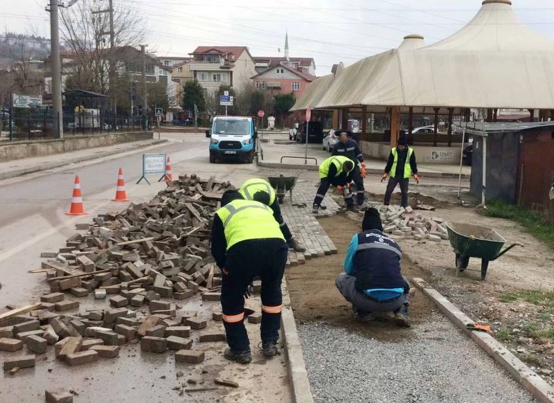 Kocaeli Büyükşehir Belediyesi Fen İşleri Daire Başkanlığı ekipleri, yaya ve araç güvenliğini sağlamak için yol ve kaldırımlarda iklim koşulları veya ağır tonajlı araç geçişleri sebebiyle meydana gelen bozulmaları onarım yaparak gideriyor. Asfalt ve kaldırımlarda meydana gelen çukur, çökme ve bozulmaların araçlara zarar vermemesi için çalışmalar yapılıyor. Bu kapsamda, İzmit Yeşilova kapalı pazar sokağında bozulma meydana gelen parke ve bordürlerin tamiri yapıldı. İzmit Malta Mahallesi ve İzmit Mimar Sinan Caddesinde asfaltta oluşan bozulma da onarıldı.