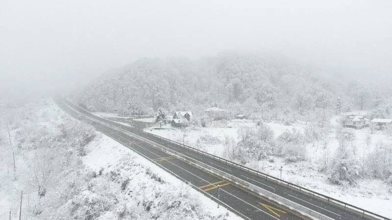 DÜZCE(İHA) – Kar yağışının ardından beyaza bürünen Bolu Dağı’nın Düzce kesimi, drone ile havadan görüntülendi.