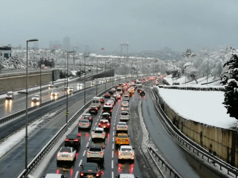 İstanbul’da etkili olan kar yağışının yanı sıra Türkiye genelinde uygulanan 56 saatlik kısıtlama sonrası haftanın ilk iş günü yola koyulan İstanbullular, genellikle kendi araçlarıyla trafiğe çıktı. Bu nedenle kentin bazı noktalarında trafik yoğunluğu oluştu. Anadolu Yakası’nda 15 Temmuz Şehitler Köprüsü’nden Anadolu’ya ve Avrupa yakasına geçişlerde çift yönlü trafik yoğunluğu oluştu. Kar nedeniyle sürücüler trafikte zor anlar yaşadı. İstanbul Büyükşehir Belediyesi (İBB) trafik yoğunluk haritasına göre trafik yoğunluğu saat 08.00’ da itibariyle yüzde 44’ü gördü.