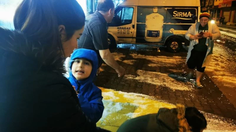 Kar yağışına hasret Marmarisliler, yağan doluda doyasıya eğlendi
