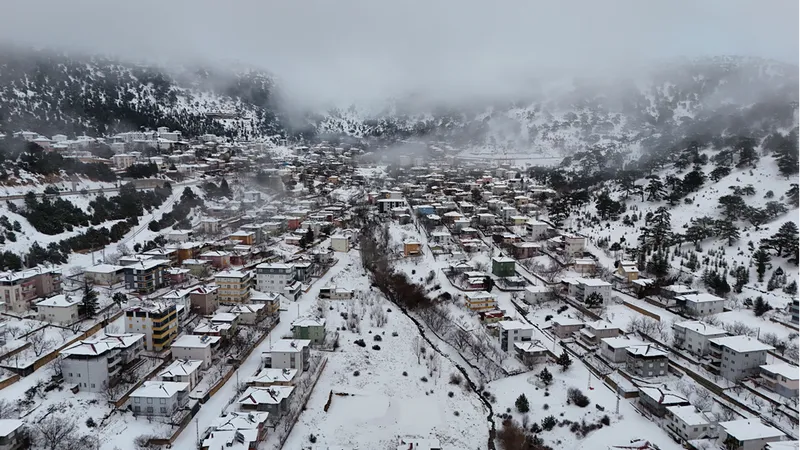 Bölgedeki çam ormanları, yollar ve evlerin çatıları beyaza büründü.