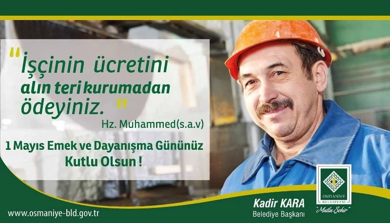 Osmaniye Belediye Başkanı Kadir Kara, 1 Mayıs Emek ve Dayanışma Günü nedeniyle bir mesaj yayınlayarak tüm işçilerin bayramını kutladı. Kara, ?Bugün işçi ve emekçiler tarafından dünya çapında kutlanan bir bayram. Tüm emekçilerin, işçilerimizin ve çalışanlarımızın emek ve dayanışma gününü kutluyorum. Peygamber efendimiz Hz. Muhammed (sav) işçinin hakkını alın teri kurumadan veriniz buyurmuştur. Bizde bu yoldan ilerleyerek göreve geldiğimiz günden bu yana işçilerimizin içeride olan tüm sosyal haklarını ödemek için büyük bir gayret sarf ettik. Yaklaşın 10 milyon Türk lirası ödeme yaparak işçilerimizin tüm alacaklarını ödedik. Artık işçimizin alın teri kurumadan maaşları ile birlikte sosyal haklarını ödüyoruz. İşçi hakkının kutsal olduğuna inanıyoruz. Ben bir kez daha başta tüm belediye işçimizin ve tüm emekçilerin 1 Mayıs Emek ve Dayanışma Günü?nü tebrik ediyorum.?dedi.