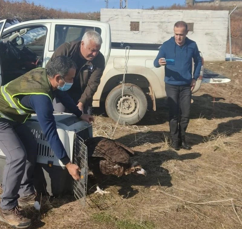 Tunceli’de nesli tehdit altında olan ve bitkin halde bulunan kara akbaba, bakım ve tedavisinin tamamlanmasının ardından yeniden doğal ortamına bırakıldı.