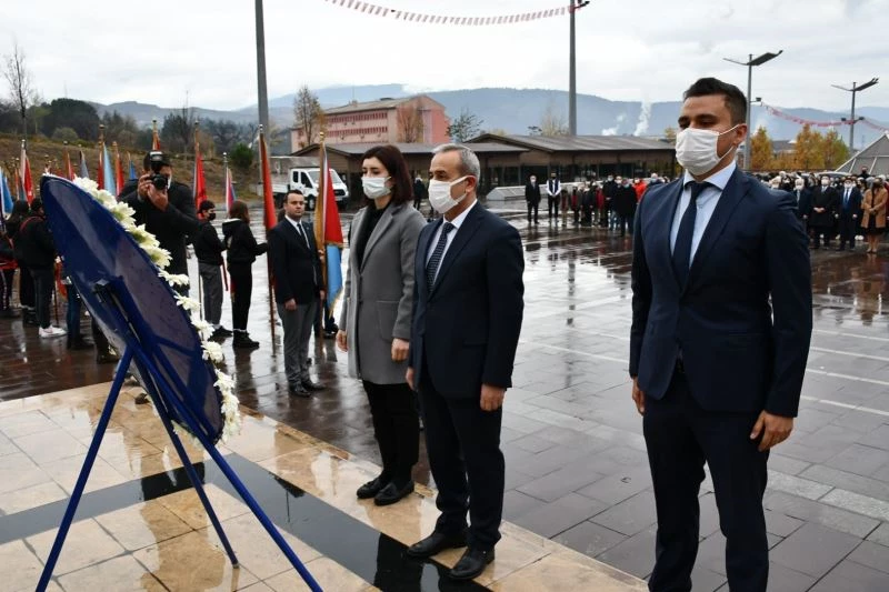 Tüm öğretmenler adına Kent Meydanı Atatürk Anıtında İl Milli Eğitim Müdürü Nevzat Akbaş tarafından çelenk sunumu yapıldı. Saygı duruşu ve İstiklâl Marşının ardından tören sona erdi. Törene Karabük Belediyesi Başkan Yardımcısı Seher Berker, Milli Eğitim Müdürü Nevzat Akbaş, kurum müdürleri, öğretmenler ve öğrenciler katıldı. Kent Meydanındaki törenin ardından etkinlikler 100. Yıl Kültür Merkezinde düzenlenen programla devam etti.