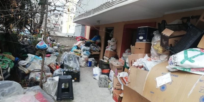 Karabük’te komşuların ihbarı üzerine kötü kokuların geldiği bir evden 2 kamyon çöp çıkarıldı.