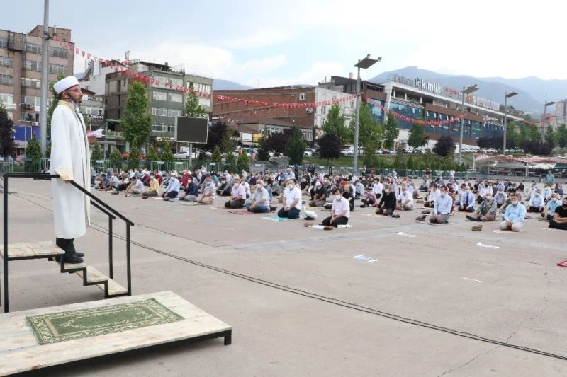 Karabük’te, korona virüs (Covid-19) tedbirleri kapsamında cuma namazı meydanda kılındı.