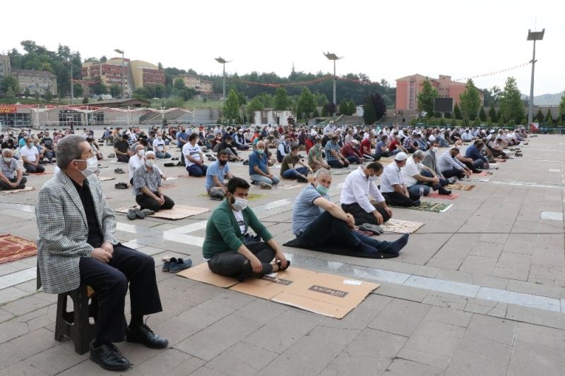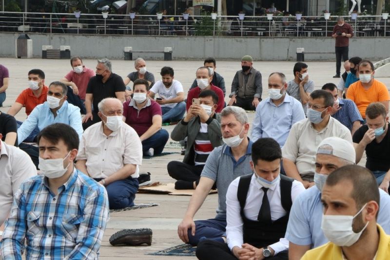 Covid-19 salgını nedeniyle 16 Mart’ta toplu ibadet ve faaliyetlere ara verilen cami ve mescitlerin normalleşme süreci kapsamında tekrar açılmasıyla birlikte üçüncü cuma namazı Karabük’te camilerin yanı sıra meydanda da kılındı.