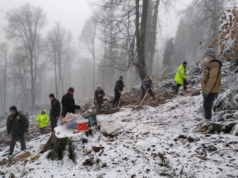 Karabük’te kar yağışına rağmen 5.5 ton kayın tohumu toprakla buluşturuldu
