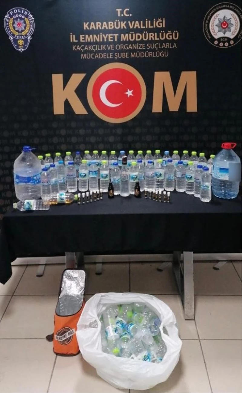 Karabük’te sahte içki üretimi yapan bir kişi polis tarafından yapılan operasyonda yakalanarak gözaltına alındı. Sahsın sahte alkolleri polise yakalanmamak için pet şişelere koyarak su görünümü verdiği iddia edildi.