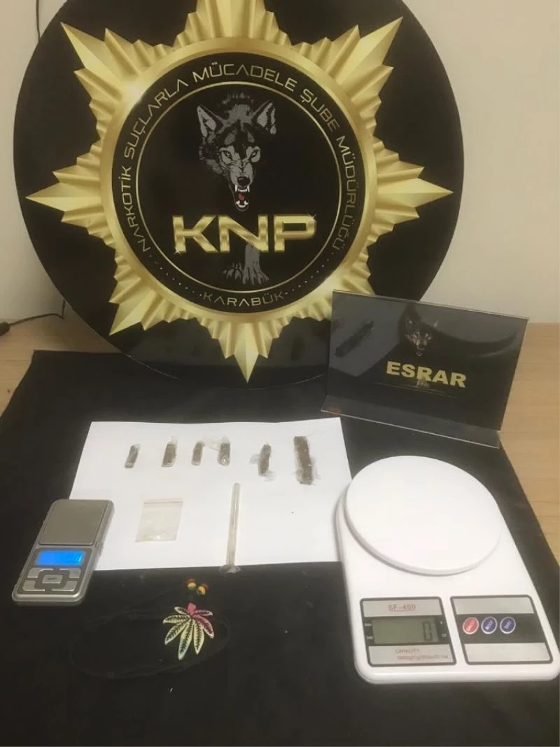 Yapılan operasyonda şahıslar gözaltına alınırken, evde yapılan aramada 6 adet fişek halinde satışa hazır vaziyette 15 gram esrar maddesi, birer adet uyuşturucu hap, uyuşturucu madde içiminde kullanılan şişe, 2 adet hassas terazi ele geçirildi.