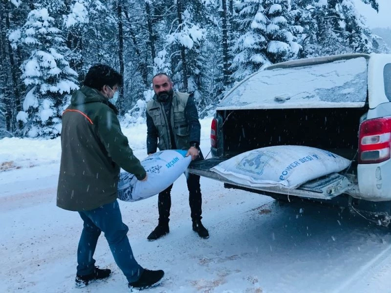 Karabük’te etkili olan kar yağışı sonrası yaban hayvanlarının aç kalmaması için Karabük Doğa Koruma ve Milli Parklar Şube Müdürlüğü tarafından doğaya yem bırakıldı.