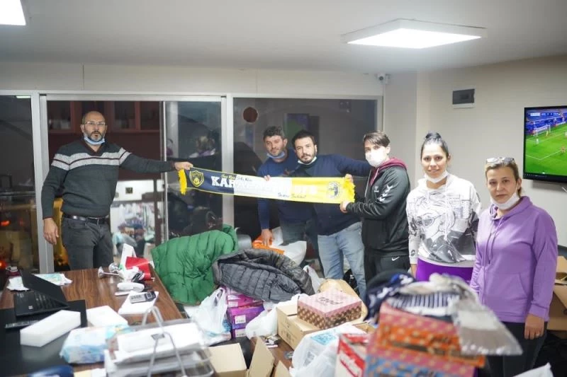 İzmir depremin ardından Karacabey Genç Fenerbahçeliler, depremden etkilenenler için yardım topladı.