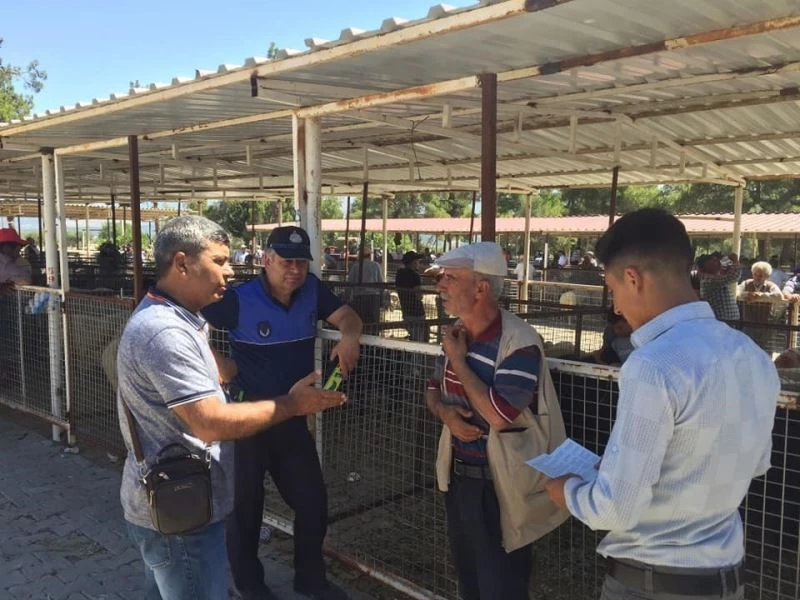 Karacasu İlçe Tarım ve Orman Müdürlüğü’nden yapılan açıklamada, "Yaklaşan Kurban Bayramı münasebetiyle İlçe Müdürlüğümüz tarafından 5996 sayılı Kanun çerçevesinde Kurban Satış Yerleri denetimlerimiz devam etmektedir. Satıcı hayvan sahiplerinin belgesiz ve kulak küpesiz hayvanlarını satış yapmak üzere Pazara getirmemeleri alıcılarında alış esnasında kulak küpesi bulunup bulunmadığı hususuna dikkat etmeleri önemle duyurulur" denildi.