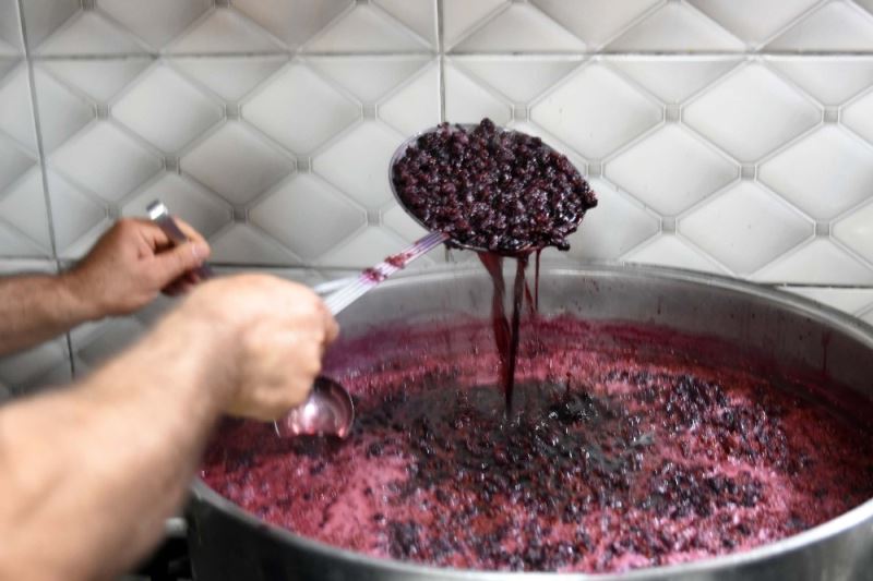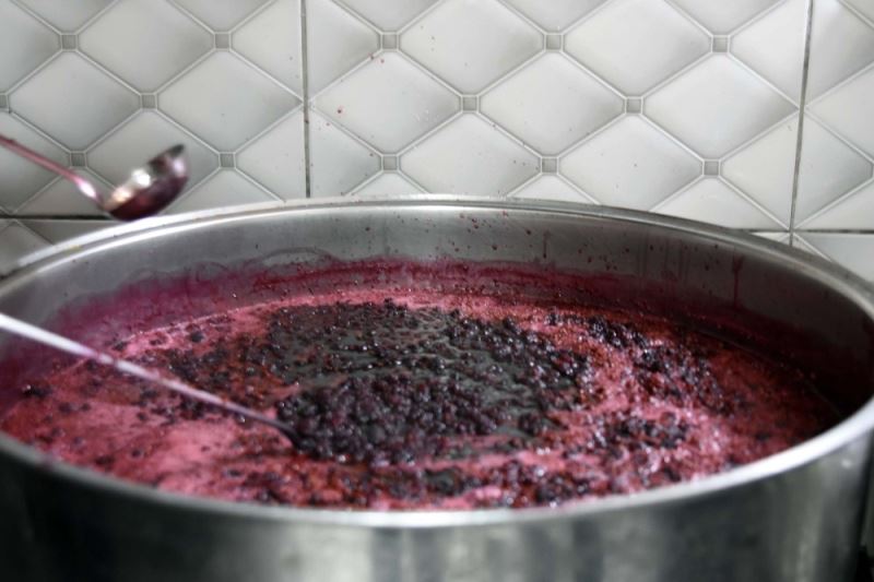 Bitlis’in Ahlat ilçesinde doğal yetişen karadut, birçok zahmetli işlemin ardından reçel, pekmez ve karadut suyu olarak satışa sunuluyor.