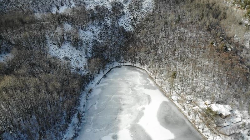 Ankara’nın Çubuk ilçesinde bulunan Karagöl Tabiat Parkı, yağan karın ardından beyaza büründü.