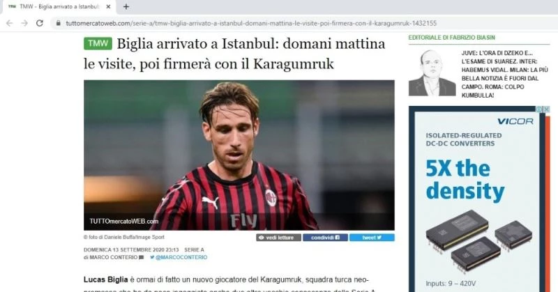 Arjantinli yıldız oyuncu Lucas Biglia’yı kadrosuna katarak flaş bir transfere imza atan Süper Lig’in yeni ekibi Karagümrük, dünya gündemine girdi. Arjantin’den İtalya’ya Avrupa ve dünya basının önde gelen kuruluşları bu transferi duyurdu.