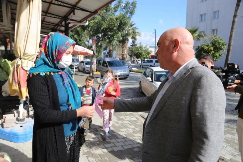 Karaisalı Belediye Başkanı Aslan, kadınlara karanfil dağıttı