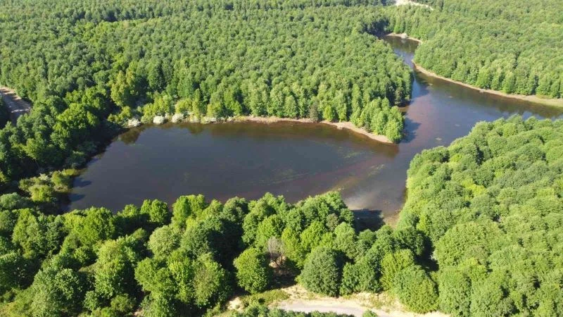 Yalova’nın Çınarcık ilçesinde bulunan Karlık Yaylası’nda kar sularından oluşan gölet ve orman manzarası görsel şölen sunuyor.