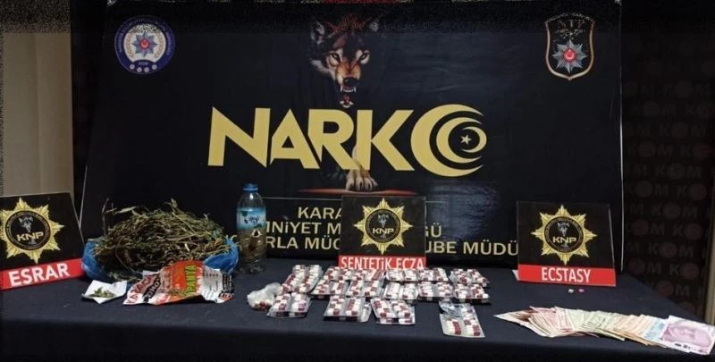 Edinilen bilgiye göre, Karaman İl Emniyet Müdürlüğü Narkotik Suçlarla Mücadele Şubesi ekipleri, D.E.K.’yi uyuşturucu ticareti yaptığı iddiasıyla gözaltına aldı. Şüphelinin gösterdiği yerde yapılan aramada 140 gram esrar, 383 adet reçeteye tabi hap ile 2 adet ekstasy ve uyuşturucudan temin edildiği düşünülen bin 105 lira para ele geçirildi. Emniyetteki işlemlerin ardından adliyeye sevk edilen şüpheli, çıkarıldığı mahkemece tutuklanarak Karaman M Tip Kapalı Cezaevine kondu.