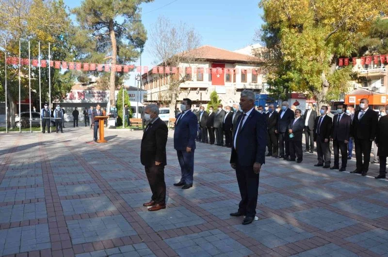 Karaman Muhtarlar Derneği Başkanı Ali Öngay ve muhtarlar ilk olarak Atatürk Anıtına çelenk sundu. Program, saygı duruşunda bulunulması ve İstiklal Marşı’nın okunmasıyla devam etti.