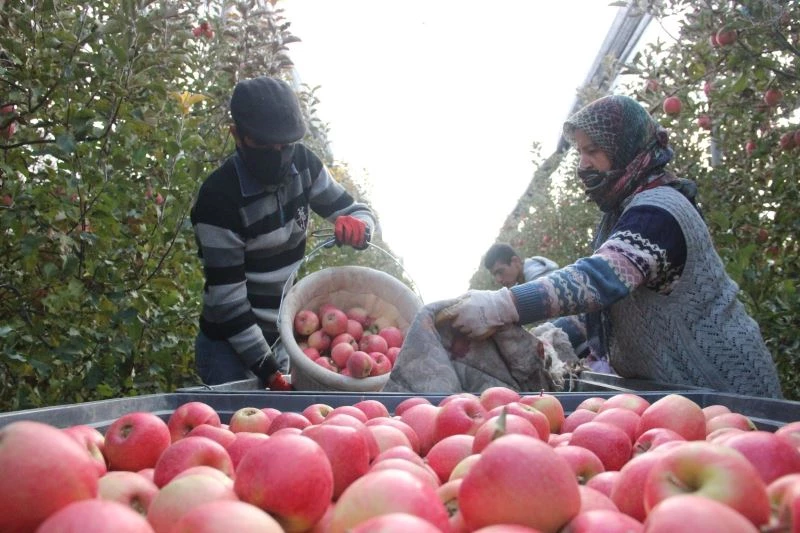 Türkiye’nin elma deposu kentlerinden biri olan Karaman’da günlük 13 bin kişi, bahçelere elma toplamaya gidiyor.