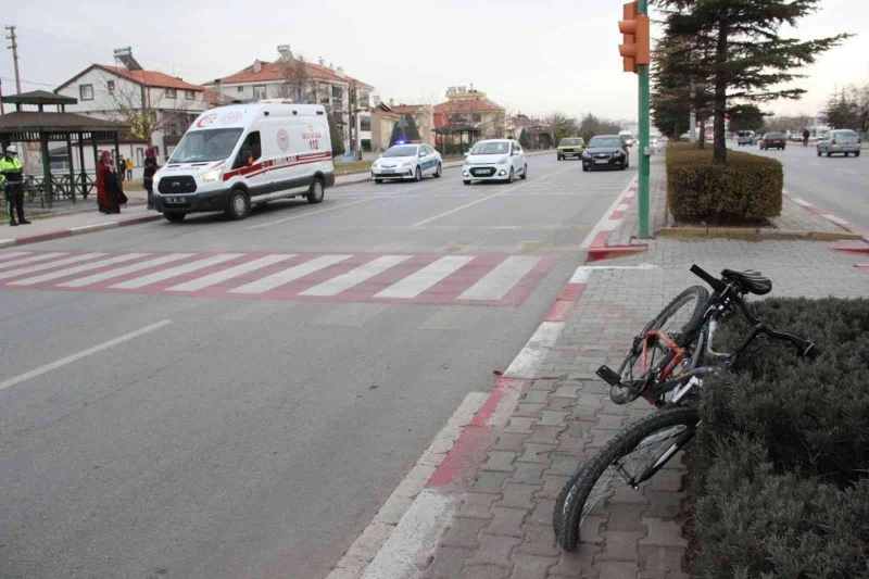 Karaman’da hafif ticari aracın yaya geçidinde çarptığı bisikletli çocuk yaralandı.