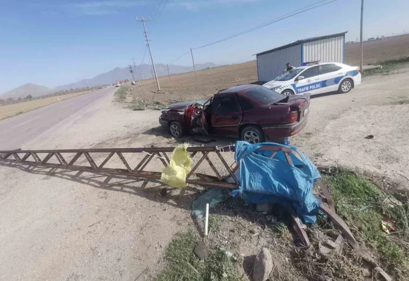 Karaman’da kontrolden çıkan otomobil elektrik direğine çarptı: 1 yaralı