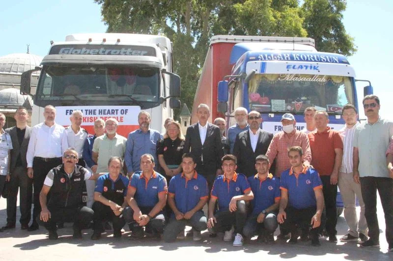 Yapılan konuşmaların ardından yardım tırları uğurlandı.