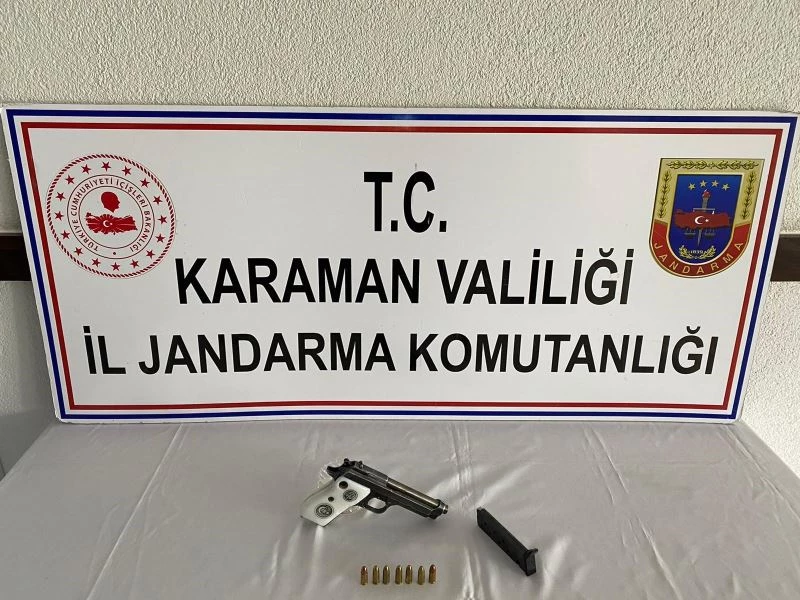 Karaman’da jandarmanın yürüttüğü devriye esnasında bir kişinin üzerinde ruhsatsız tabanca ele geçirildi.