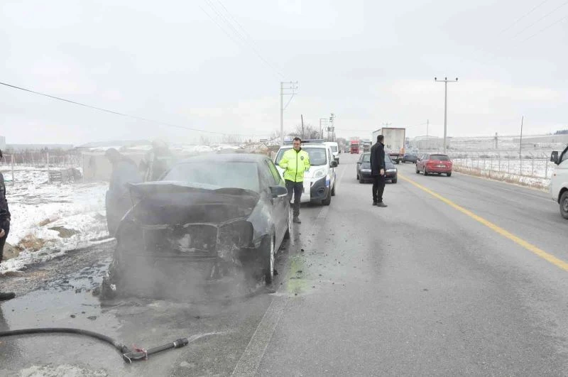 Karaman’da seyir halindeki otomobil alev topuna döndü