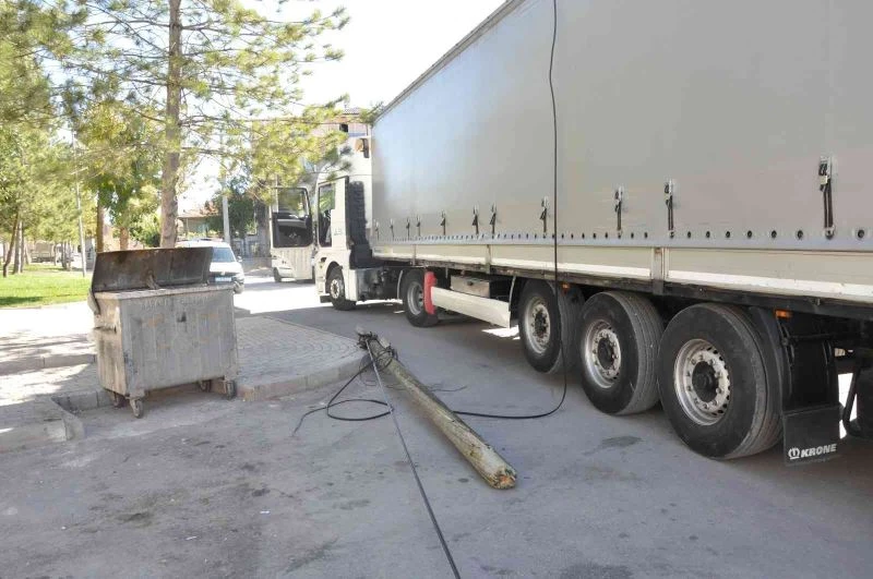 Karaman’da tırın dorsesi telefon direğini yıkarak otomobile hasar verdi