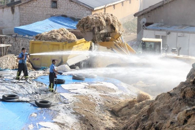 Karaman’da kuru otların tutuşması sonucu kıvılcımların saman balyalarına sıçraması sonucu çıkan yangın, itfaiye ekiplerinin uzun uğraşları sonucu söndürüldü.