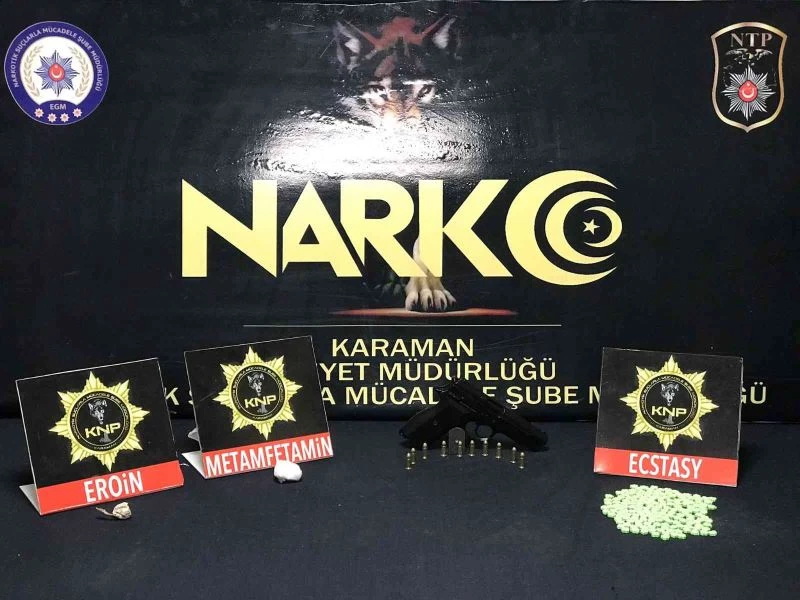 Edinilen bilgiye göre, İl Emniyet Müdürlüğü Narkotik Suçlarla Mücadele Şubesi ekipleri, kentte uyuşturucu ticareti yapan kişilerin olduğu yönünde duyum alması üzerine çalışma başlattı. Cumhuriyet Başsavcılığının talimatı ile harekete geçen ekipler, il dışından uyuşturucu madde getirdikleri ileri sürülen Y.D., O.K., H.B., S.Y. ve S.T.’yi düzenlediği operasyonla yakalayarak gözaltına aldı. Yapılan aramalarda 182 adet uyuşturucu hap, 130 gram plaka esrar, 141 gram metamfetamin, 4 gram eroin, hassas terazi ve bir adet tabanca ele geçirildi. Emniyetteki işlemlerin ardından adliyeye sevk edilen şüphelilerden Y.D., O.K. ve H.B., çıkarıldıkları mahkemece tutuklanarak Karaman Kapalı Cezaevine gönderildi. Şüphelilerden S.Y. ile S.T. ev hapsi şartıyla serbest bırakıldı.