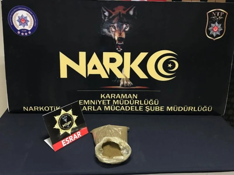 Alınan bilgiye göre, Karaman İl Emniyet Müdürlüğü Narkotik Suçlarla Mücadele Şubesi ekipleri, A.K., F.Y. ve R.K. isimli şahısların uyuşturucu ticareti yaptığı yönünde duyum alması üzerine çalışma başlattı. Ekipler düzenledikleri operasyonla 3 şüpheliyi yakalayarak gözaltına aldı. Şüphelilerin evlerinde yapılan aramada ise 1 kilo toz esrar ele geçirildi. Emniyetteki işlemleri tamamlandıktan sonra adliyeye sevk edilen zanlılardan A.K. ile F.Y. çıkarıldıkları mahkemece tutuklanarak Karaman M Tipi Kapalı Cezaevi’ne konarken, R.K. ise adli kontrol şartıyla serbest bırakıldı.