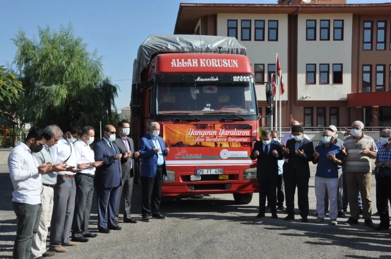 Yangın bölgesinde zarar gören ailelere Karaman Valiliği tarafından beyaz eşya kampanyası başlatıldı. 3 hafta önce başlatılan kampanya kapsamında toplanan yardımlar törenle Antalya’nın Manavgat ilçesine bağlı Belenobası köyüne gönderildi.