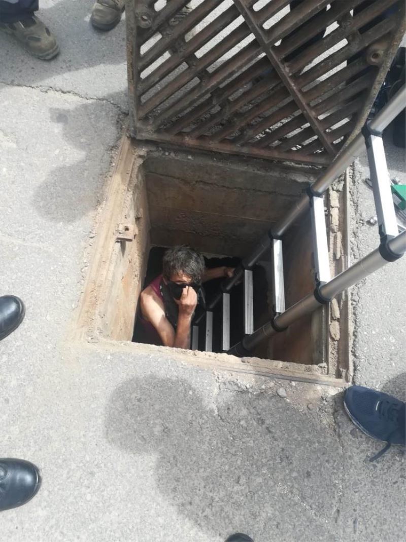 Karantina bölgesine kanalizasyondan girmeye çalışırken mahsur kalan kişi kurtarıldı