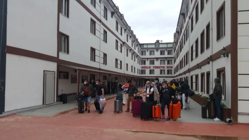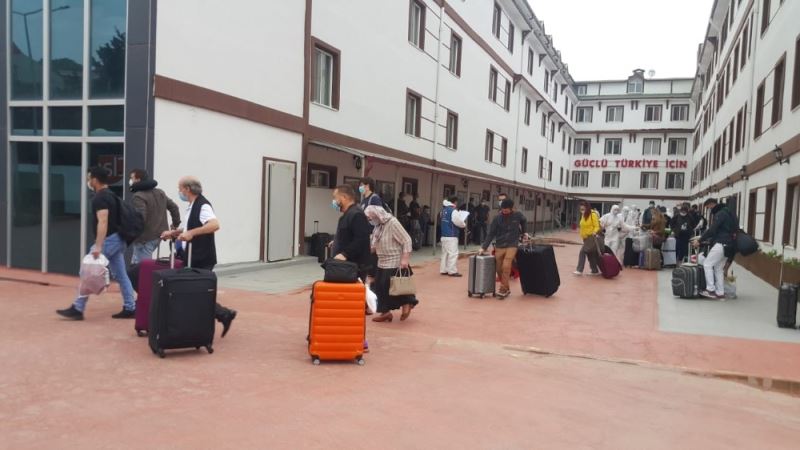 Yetkililerin sosyal mesafe kuralına dikkat ederek uğurladığı 187 kişi, araçlarla memleketlerine uğurlandı.