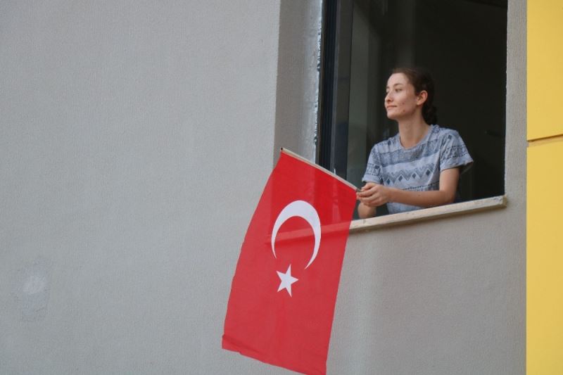Yeni tip korona virüs (Covid-19) tedbirleri kapsamında Kırşehir’de karantina altına alınan vatandaşlar, ellerindeki Türk bayrakları ile 19 Mayıs coşkusunu yurt görevlileri ile birlikte yaşadı. Saat 19.19’da kaldıkları yurdun pencerelerine çıkan vatandaşlar, hep birlikte İstiklal Marşı’nı okudu. 14 gündür Kırşehir Fatma Bacı Yurdu’nda kalan Cemile Kurtulan, yapılan her şey için yetkililere teşekkür etti.