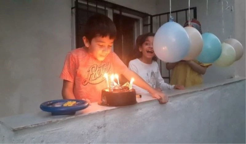 Karantinadaki minik Abdullah’a balkonda doğum günü sürprizi