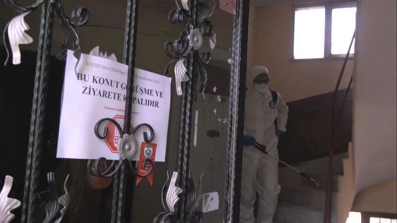 Karantinaya alınan apartmanlarda dezenfeksiyon çalışmaları