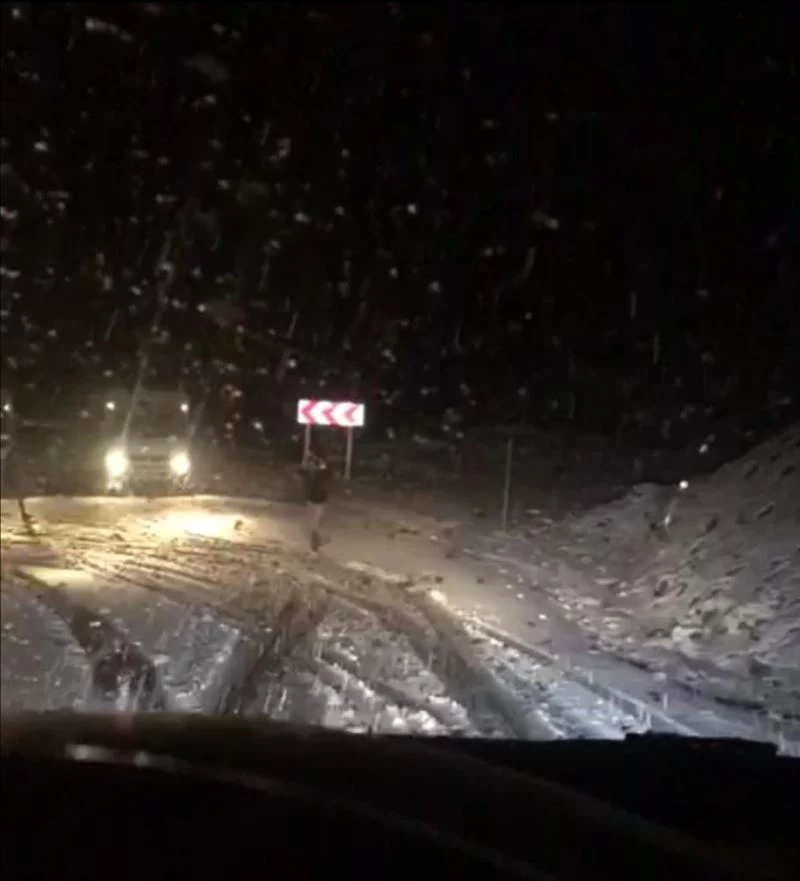 Van-Bahçesaray karayolu üzerindeki 3 bin rakımlı Karapet Geçidinde yılın ilk karı yağdı.