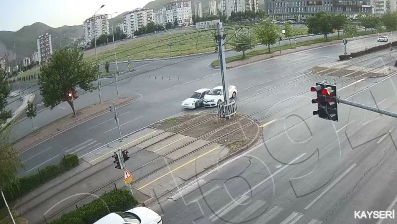 Kayseri’de MOBESE kameralarına yansıyan görüntülerde, kavşakta dönmekte kararsız kalan sürücü kazaya neden oldu.