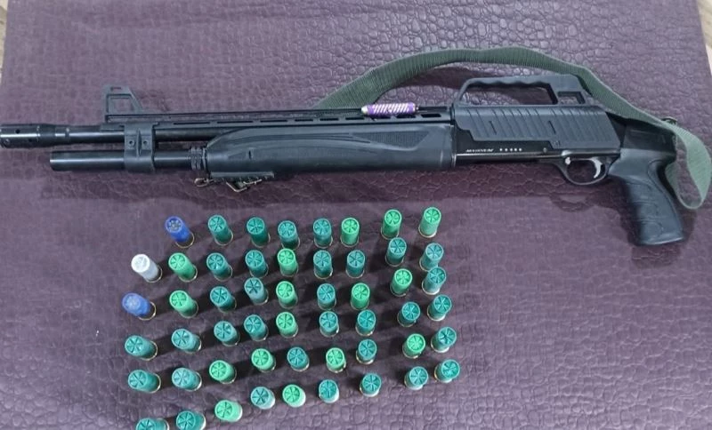 Şüphelinin ikametinde yapılan arama sonucunda; 1 adet ruhsatsız otomatik av tüfeği, bu tüfeğe ait 53 adet fişek ve çok sayıda dijital malzeme ele geçirildi.