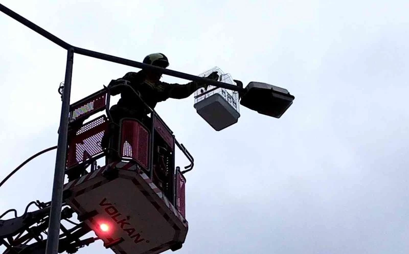 Bursa’nın İnegöl ilçesi Bursa-Ankara karayolunda kafesinden kaçarak aydınlatma direğine konan cennet papağı, itfaiye ekiplerinin uzun uğraşları sonucu yakalanarak aileye teslim edildi.