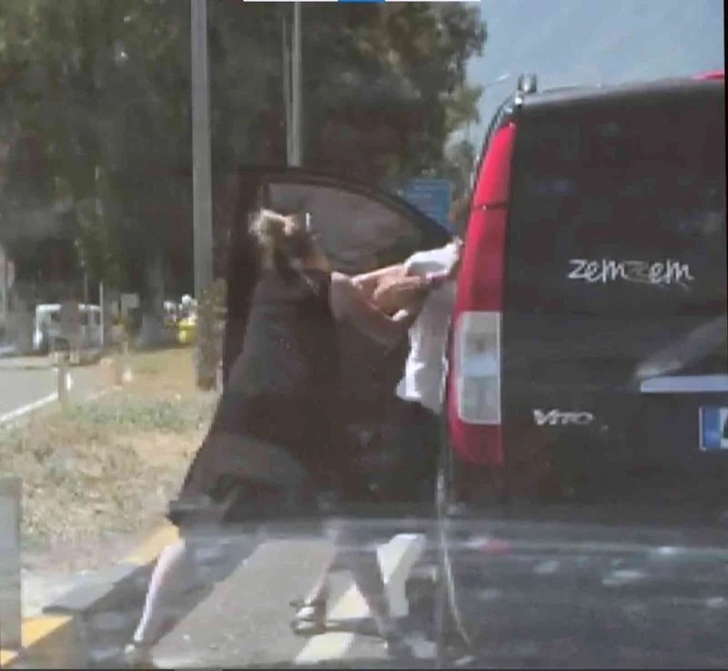 Gökova-Marmaris kavşağına gelen iki sürücüden beyaz araç sürücüsü aracını sola yanaştırarak kırmızı ışıkta durdu. Araçtan inen sürücü siyah minibüsün sürücü kapısını açarak sürücüyü darp ederken, eşi tarafından engellendi.