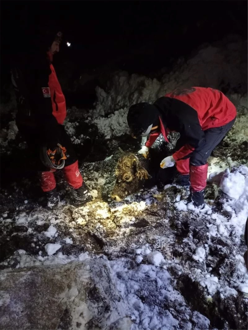 İçeride bulunan 6 büyükbaş, 3 küçükbaş olmak üzere toplam 9 hayvan telef olurken 1 büyükbaş hayvan ise ekipler tarafından kurtarıldı.