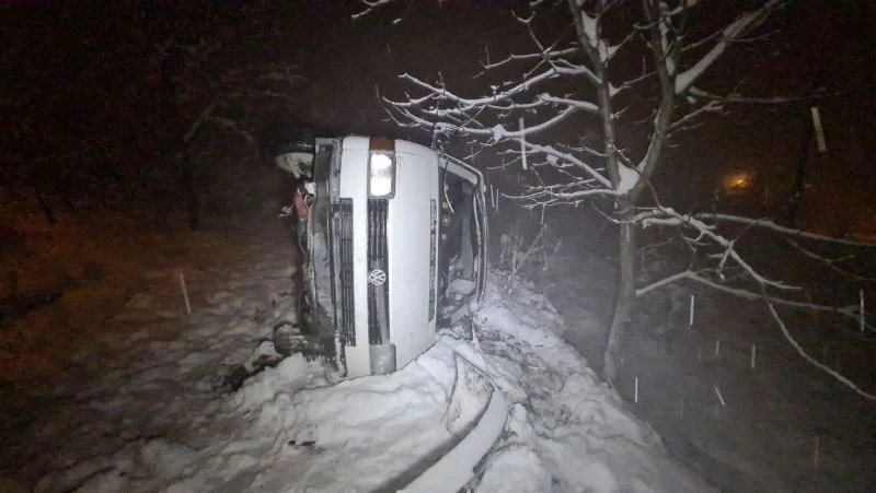 Karda kayan minibüs yoldan çıkıp bahçeye uçtu: 4 yaralı