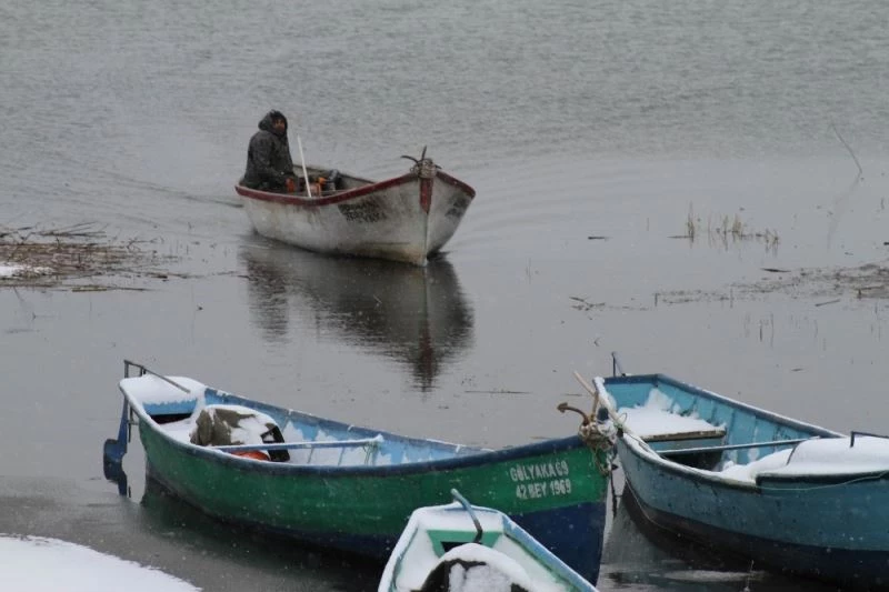 Türkiye’nin en büyük tatlı su gölü olan Beyşehir Gölü’nde dünden bu yana aralıklarla etkili olan kar yağışı ve tipiden balıkçılık faaliyetleri de olumsuz etkilendi. Yağış nedeniyle balıkçı tekneleri karla doldu.